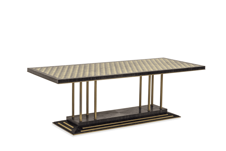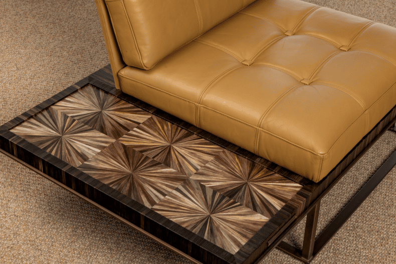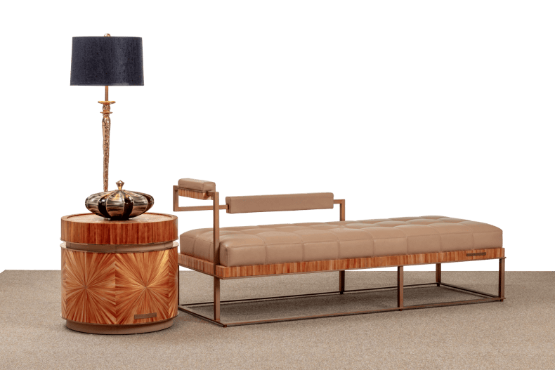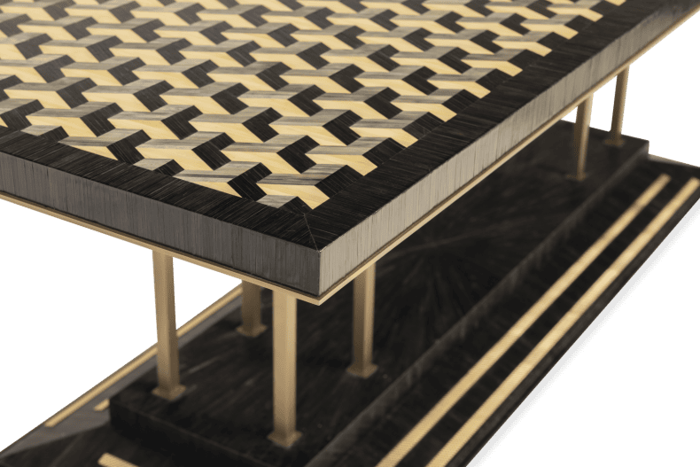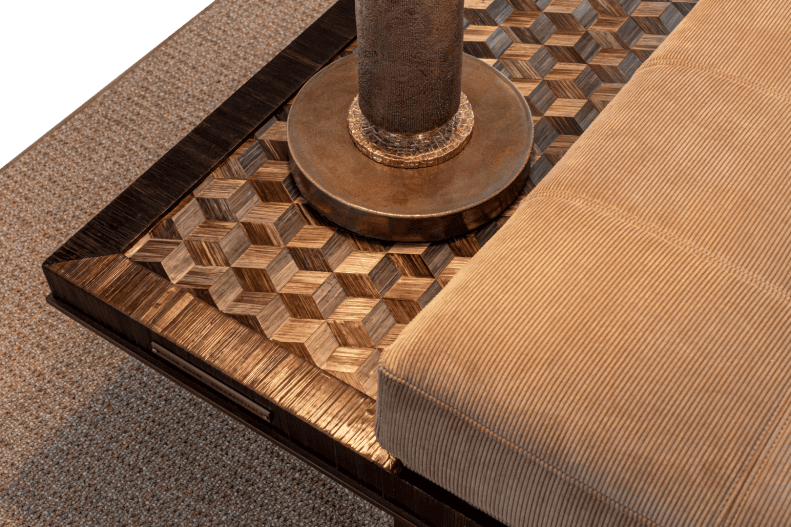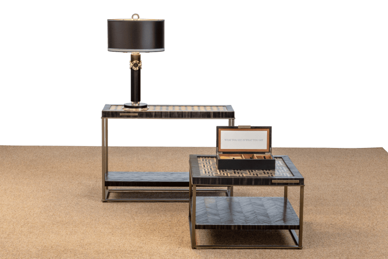 The Collec(t)able furniture series is an unique collection of tables that are designed to be both stylish and functional. The tops of the tables feature geometrical shapes and are made of luxury materials such as bamboo, selenite, straw marquetry and parchment leather. These materials give them a high-end look and feel. The tables are designed to be combined seamlessly together, allowing you to create a cohesive and stylish look.